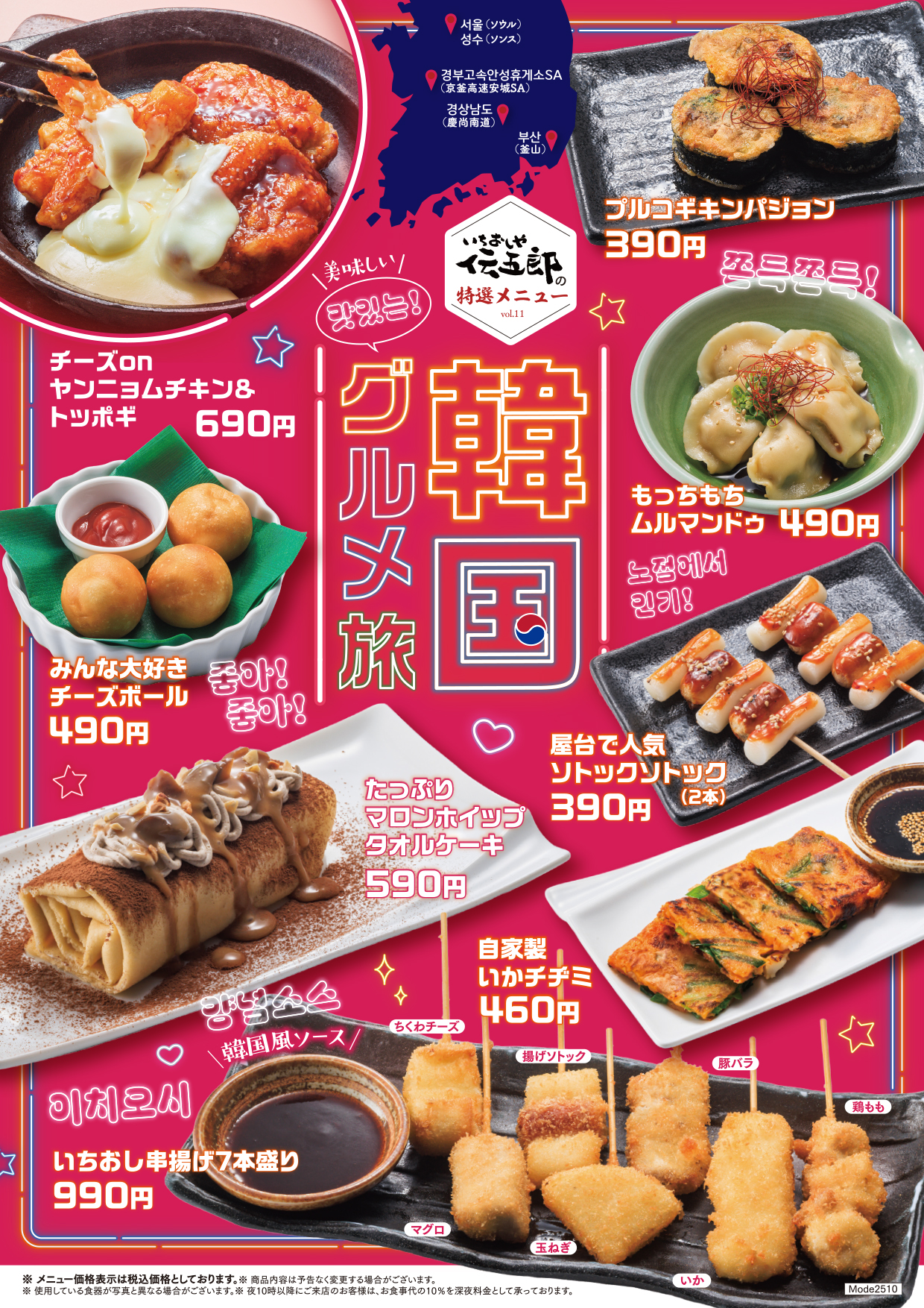 【11月6日(木)~】韓国グルメ旅気分♪伝五郎11月特選メニュー販売開始!