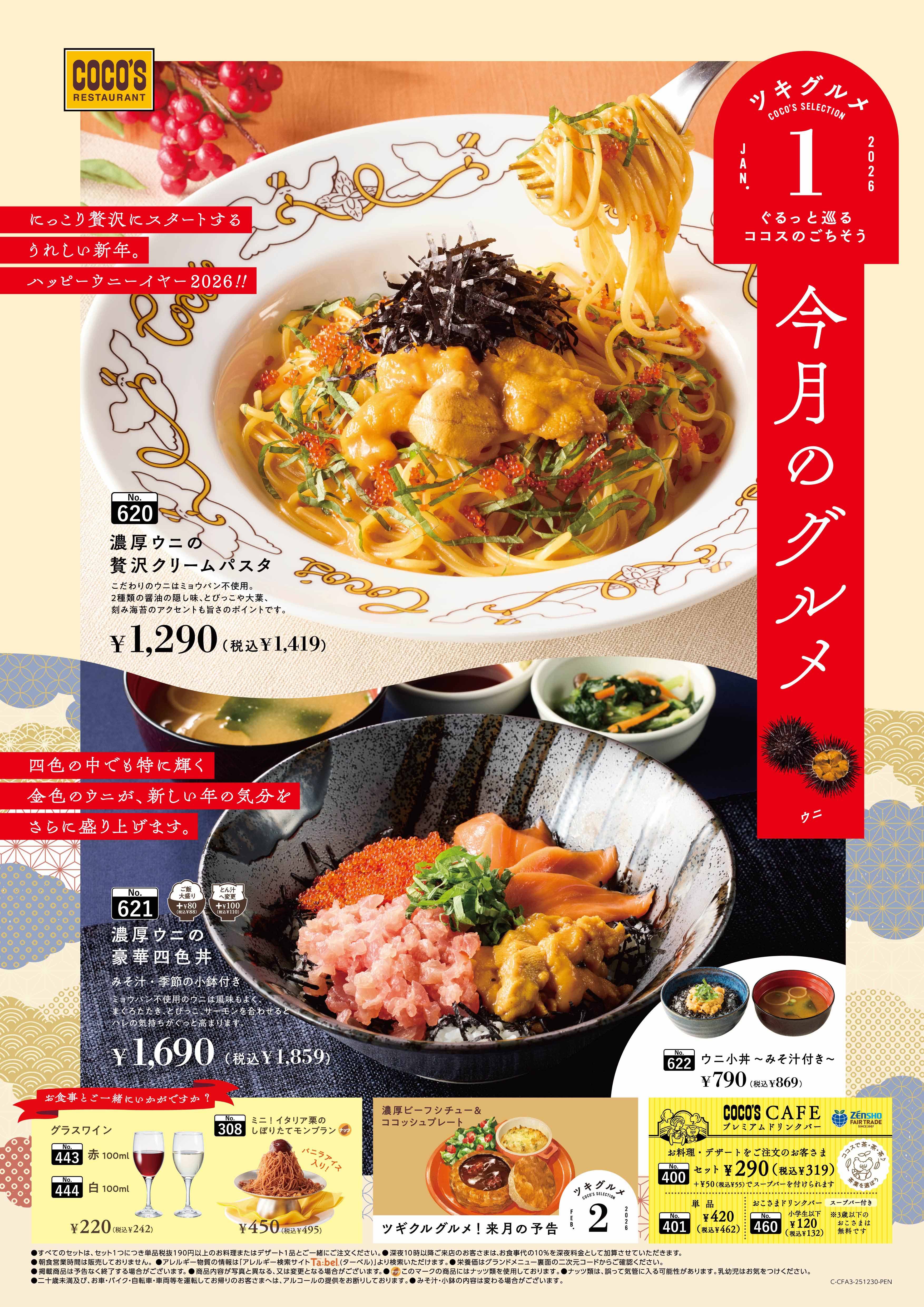 ぜひ、お近くのココスで、年末年始にぴったりのプチ贅沢な「今月のグルメ ~1 月~」をお楽しみください。