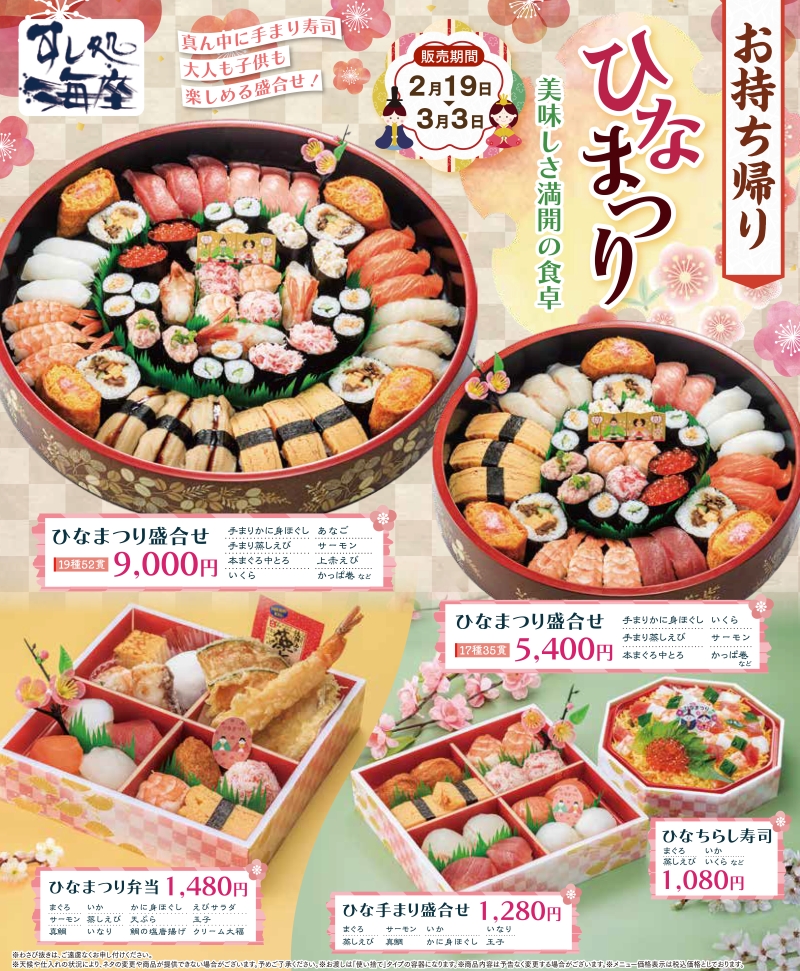 2月19日(木)よりひなまつりの持ち帰り寿司を販売します。