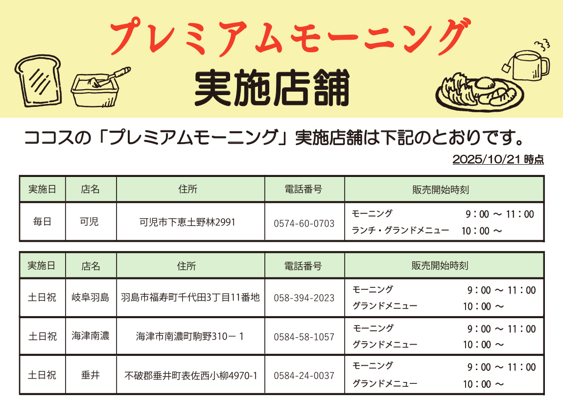 【10月21日(火) ~ 】プレミアムモーニングメニューが新しくなります!